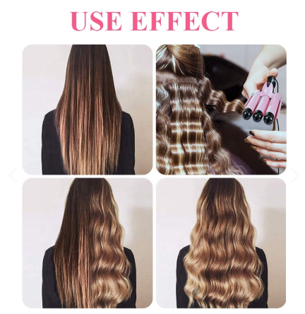 Transforma tu cabello liso en ondas profundas, definidas y con efecto “sirena” de manera rápida, fácil y duradera. Este rizador de tres tubos distribuye el calor de forma uniforme, creando ondas naturales con un acabado profesional sin dañar tu cabello.