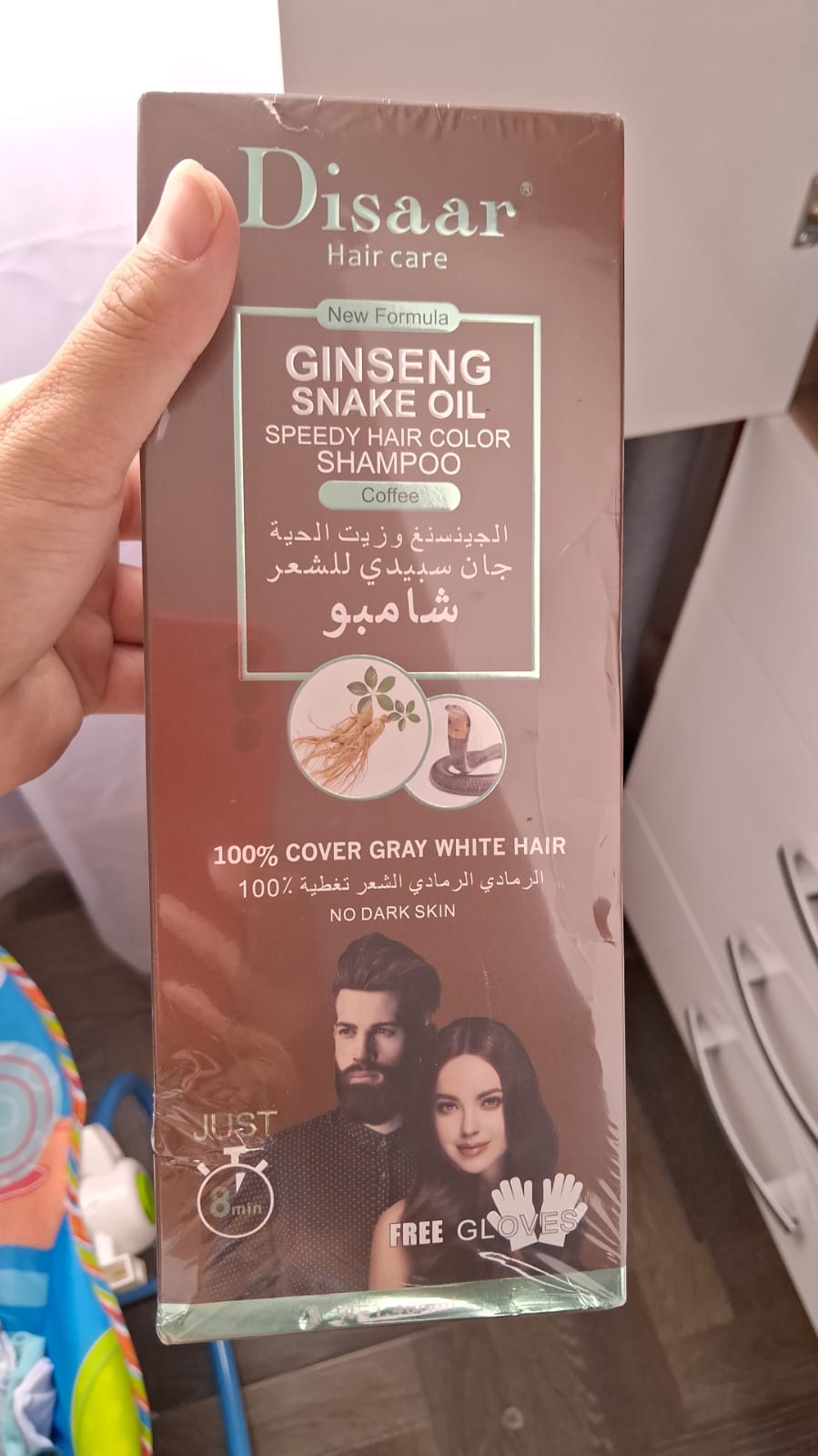 Simplemente use los guantes incluidos en la caja, aplique el champú y masajee durante unos minutos, como lo haría con un champú regular, luego enjugua con abundante agua. 🛁